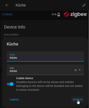 Zwar haben sich nicht alle Geräte wieder gemeldet, dennoch musste ich keinen der Unterputz-Aktoren zurücksetzen, was schon mal einen wesentlichen Gewinn zu meinem ersten Umstieg von Phoscon zu Zigbee2MQTT darstellt. Die meisten Aquara Temperatursensoren tauchten nach mehrmaligen Drücken auf dem Verbindungsknopf auf, einige musste ich aber dennoch neu einlernen.
