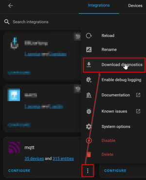 Aus den neuen Namen konnte ich zudem nicht ableiten um welches Gerät es sich handelt, daher habe ich in der MQTT-Integration ein Diagnostic-File heruntergeladen. Die Datei enthält die ursprünglichen Namen und IDs der Geräte, wodurch ich diese nachschlagen konnte.