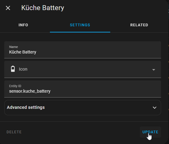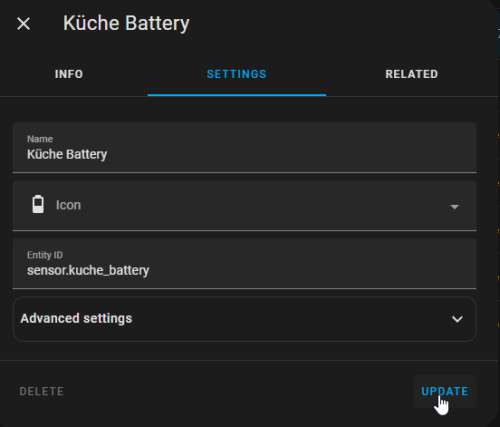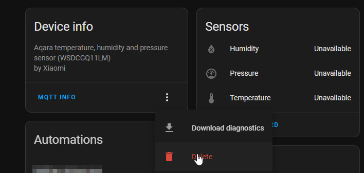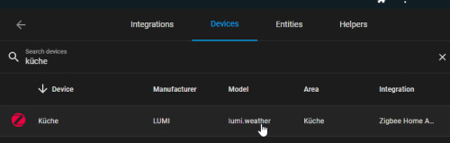 Leider haben alle Geräte einen neuen Namen in Home-Assistant bekommen, was mir dennoch einiges an Arbeit beschert hat. Damit ich alle bestehenden Lovelace-Cards ohne Anpassung weiterverwenden kann, habe ich allen Geräten dessen ursprünglichen Namen wieder gegeben. Dazu musste ich das alte MQTT-Gerät jeweils als Erstes löschen: