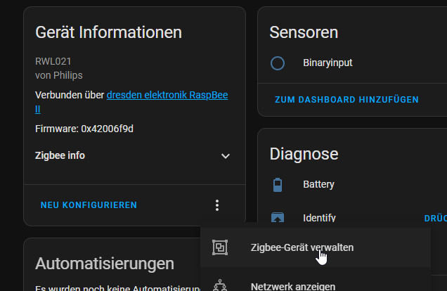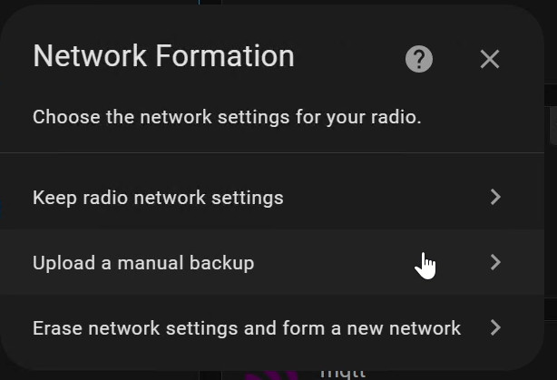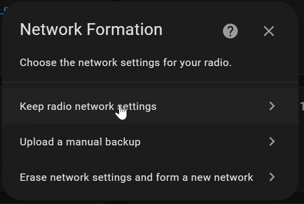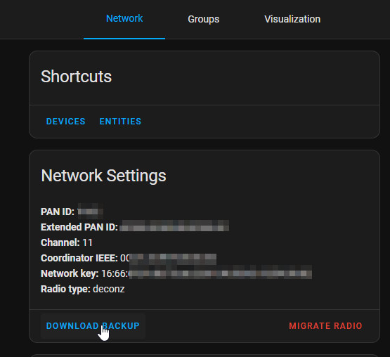 In Home Assistant kann über die ZHA Integration ein Backup der Netzwerkeinstellungen erstellt werden.