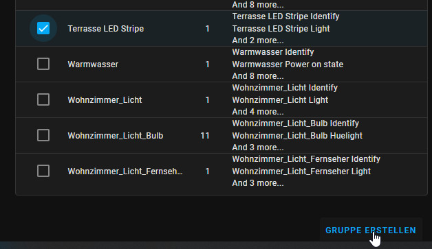 Gruppe für die Geräte erstellen die geschaltet werden sollen: